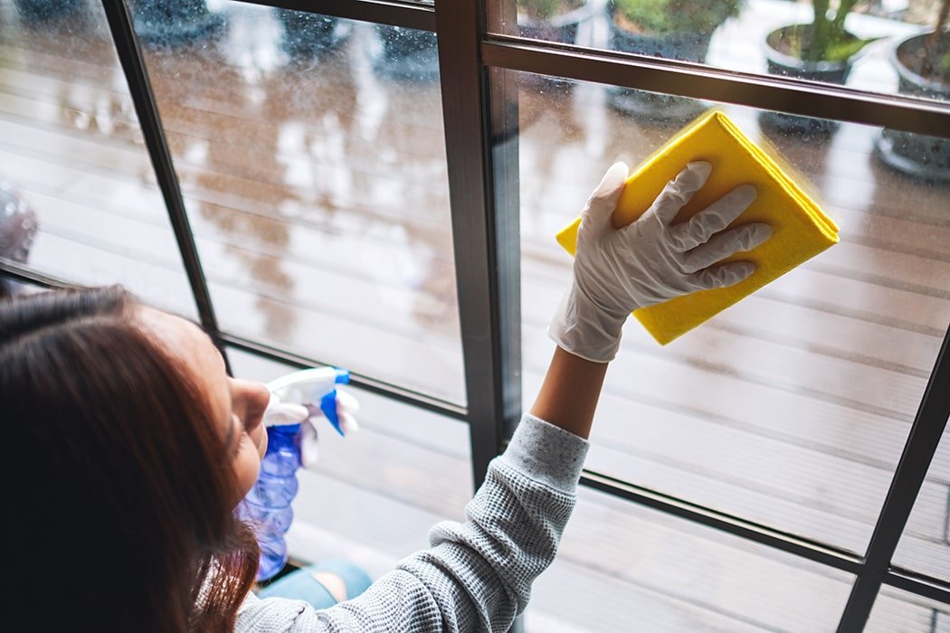 cleaning services include washing both the inside and outside of glass panes,